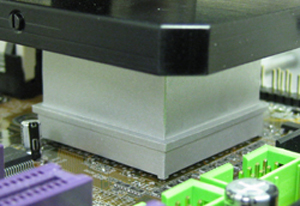 After securing the motherboard by the board holder’s clamps, an operator installs a vacuum pick up tip and nozzle suitable for the BGA device. Implementing machine’s optics, the nozzle is aligned over the component. A pre-established profile is selected from the software’ library and Start icon is selected. At this point the process is hands-off. Rework station automatically drives the nozzle down to a board and covers the BGA. Machine then activates vacuum pick up tip so as to remove the component once reflow is achieved and the heating cycle is initiated. Figure 2 shows a nozzle covering the device during reflow.